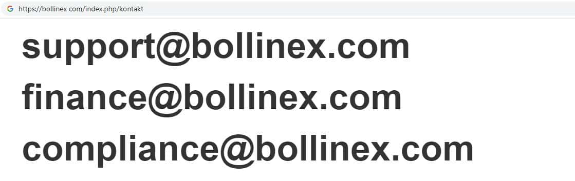 Лохотронщики Боллин ЕХ на своем официальном интернет-ресурсе указывают адреса электронной почты компании, а именно:
