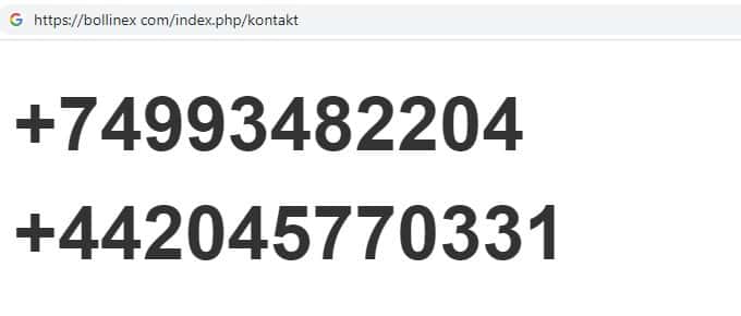 Шулера BollinEX на своем дырявом сайте указали несколько номеров контактного телефона, с которых навязчиво названивают потенциальным жертвам: