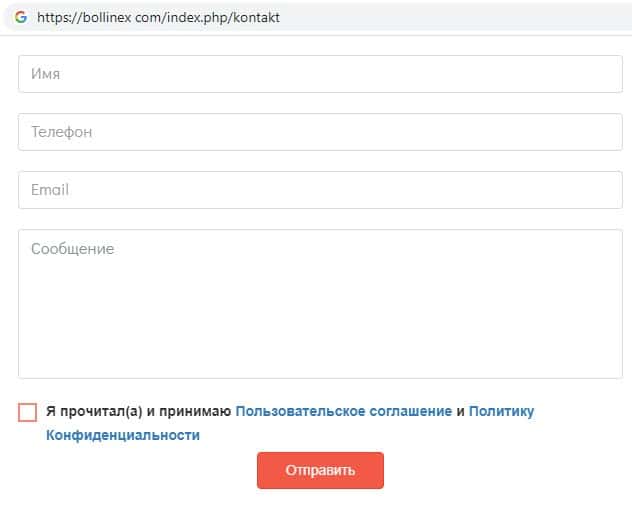 - Техническая поддержка на сайте конторы BollinEX отсутствует
