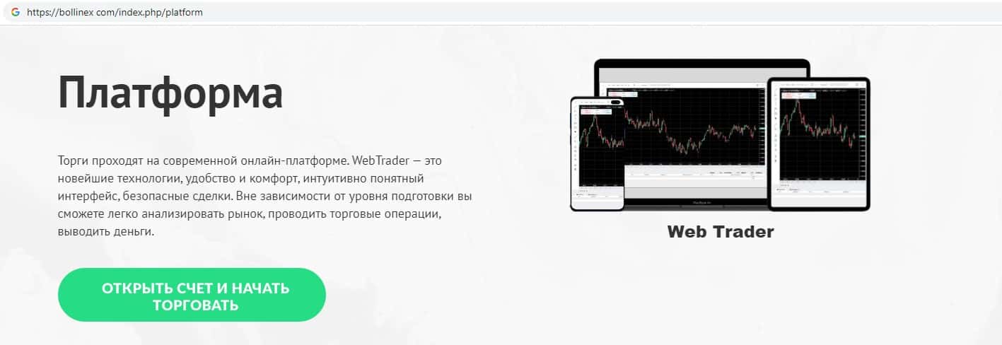 Жулики BollinEX на своем дырявом сайте предлагают торговать при помощи сомнительного происхождения веб-платформы, чего делать не рекомендуем !!!