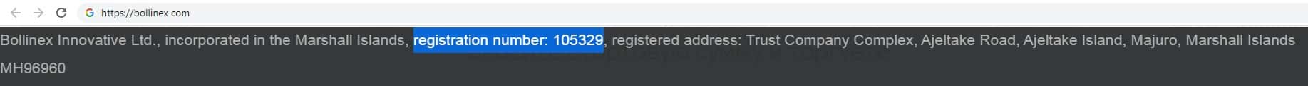На своем официальном сайте шулера Боллин ЕХ предоставили вероятно вымышленный регистрационный номер своей компании, который представлен на скриншоте ниже.