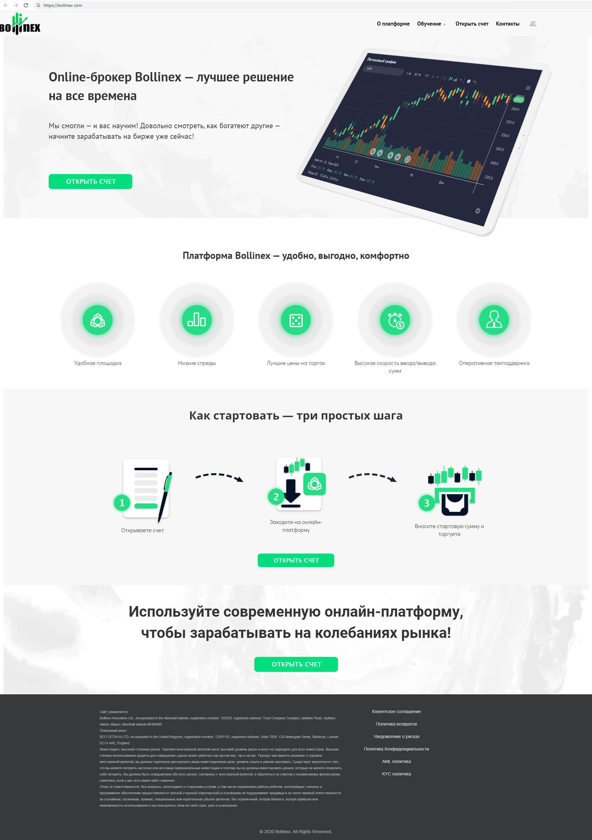- Обзор главной страницы жульнической организации Bollin EX