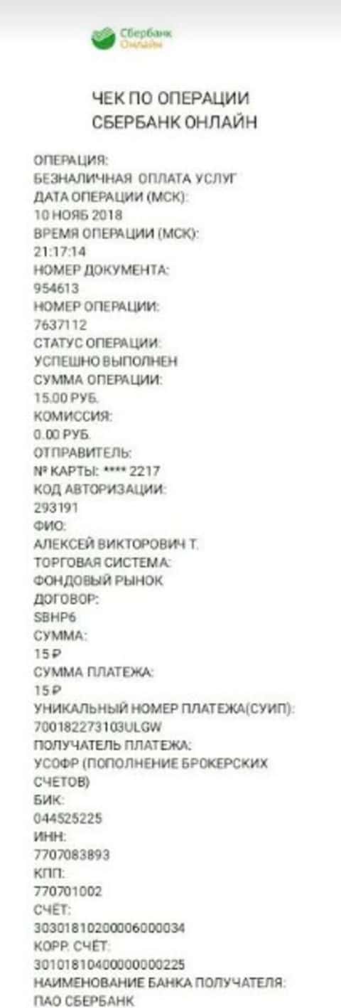Ниже представлен чек из Сбербанка, который подтверждает перевод средств клиентом в дилинговую кухню Борман. С помощью этой информации специалисты, возможно, смогут вычислить куда пошли деньги и вернуть их обратно своему владельцу.