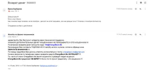 Как и многие клиенты конторы Борман, женщина попалась на их уловки и потеряла огромную сумму денег. По совету тех же кинутых клиентов, она написала все подробности в организацию ChargeBack.Me где знают правильную процедуру возврату средств вопреки воле жуликов. Теперь остается только ждать, ведь аферисты закрывать счет, на котором лежат ее деньги не хотят.