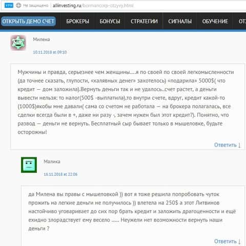 - Очередная жертва была обворована шулерами дилинговой конторы Borman на 2700 долларов