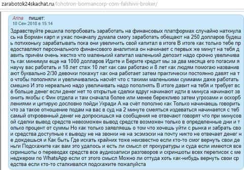 Очередная жалоба на онлайн-лохотрон Borman Corp