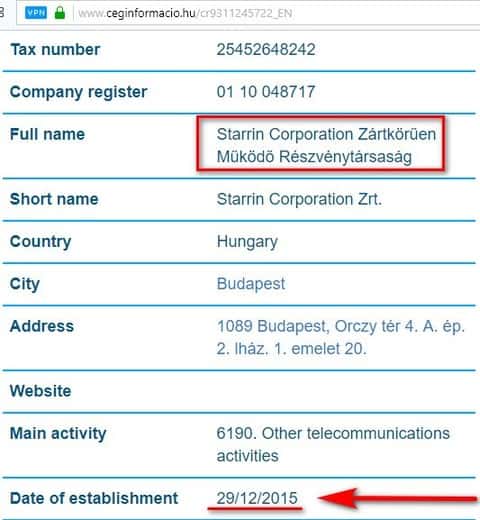 Регистрация компании Борман в интернете и дата регистрации Starrin Corporation Zrt далеко не совпадают
