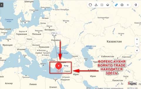 Жульническая контора Борнто Трейд закидывает свои удочки на территории стран СНГ с Кипра, где расположили свой главный офис. Таким образом их найти сложно, потому что зона оффшорная и на каждый адрес по несколько сотен контор зарегистрировано.