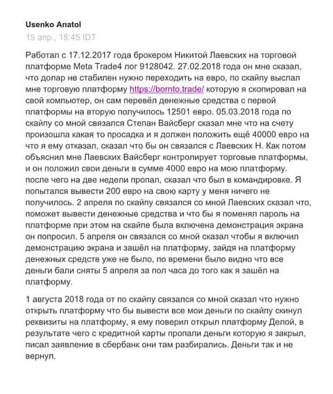 - Жалоба на БорнтоТрейд - клиент утратил более 10 000 евро