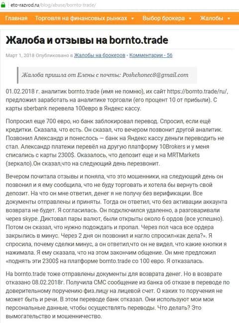 - Жертва форекс-лохотронов попала на очередного мошенника Bornto Trade на 96 евро