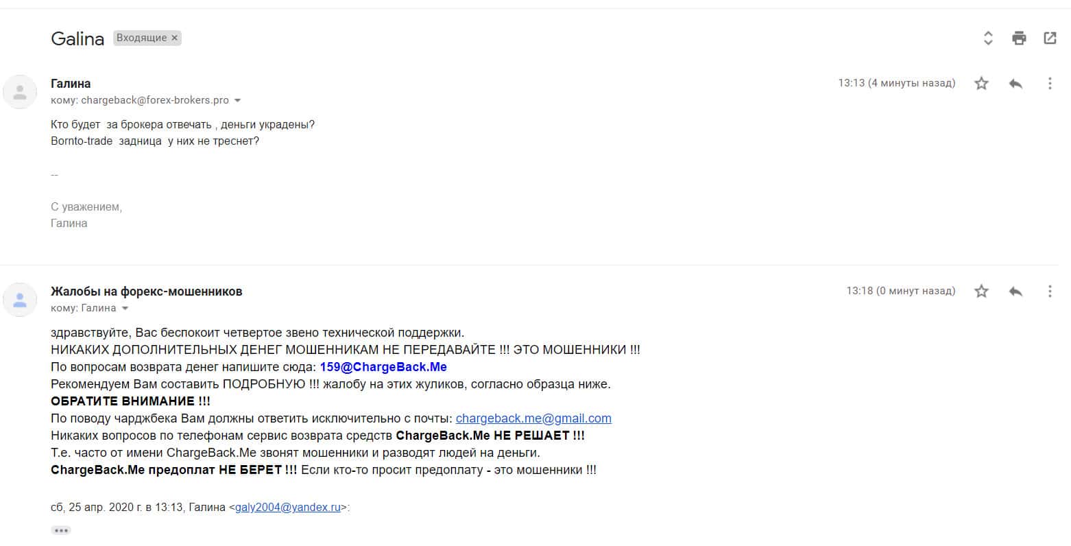 В том случае если шулера из Борнто Трейд и Вас тоже развели, то обязательно напишите о данном факте нам. Сообщите свой е-майл в форме обратной связи чуть ниже, с Вами установят контакт.