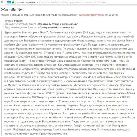 Жалоба на БорнтоТрейд - клиент утратил более 10 000 евро