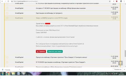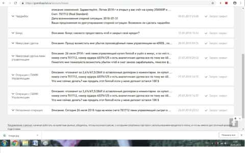 Далее представлены все запросы у жуликов Гранд Капитал и Бостон Груп . Всё что касается ввода средств, конечно же, прошло без проволочек. Что же случается, когда клиент пытается вывести средства. Сто и одна отговорка, и постоянное оттягивание резины, лишь бы не платить, что еще раз подтверждает мошенническую суть кооператива аферистов BostonGroup и Grand Capital