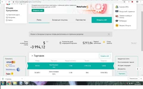 Брокерская контора ГрандКапитал опрокинула человека на десять тысяч долларов США