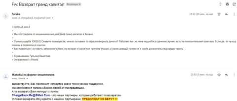 Еще один клиент из Казани оказался в минусе на огромную сумму в 10 тысяч долларов через опять же ЛАММ-счета. Слиты деньги были мошенниками Гранд Капитал при содействии с BostonGroup. Клиент был направлен на один из честных веб-ресурсов ChargeBack.Me для возврата потерянных средств, которые, надеемся, вернутся клиенту и улетят с наглых лап мошеннического тандема Бостон Груп и Grand Capital.