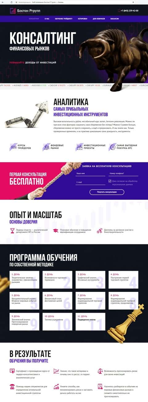 Что же по поводу сайта, то тут у BostonGroup всё стандартно. Похвалит можно только визуальное оформление и дизайн, они сделаны хорошо. Что же по наполнению, то тут сплошной мрак. Сплошные обещания заработка с намёком на серьезность. Стоит ли говорить, что, зная об истинной сути Бостон Груп, все эти постулаты и красивые фразы звучат очень даже смешно, что нельзя сказать о ситуациях в которых оказались бесчисленные жертвы BostonGroup, там не всё так смешно, а даже грустно, что честные люди теперь страдают, а мошенники остаются безнаказанными.