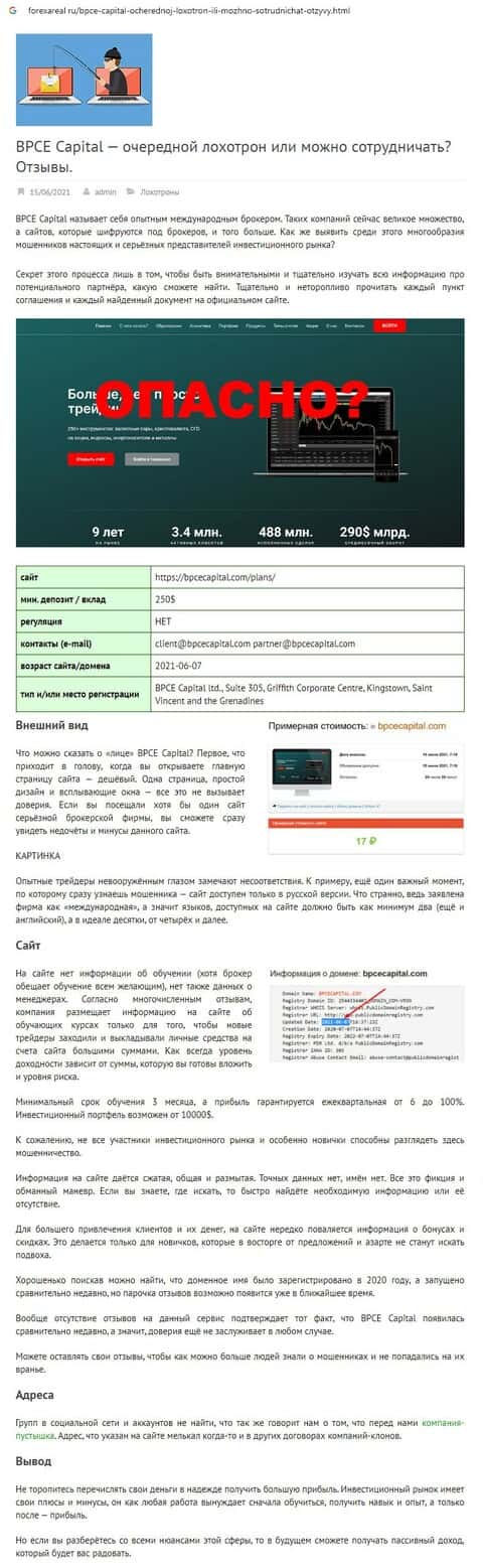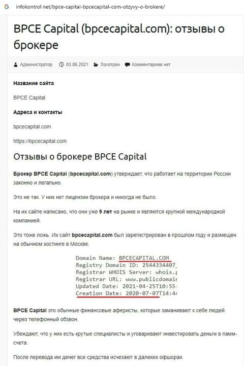 Ниже предоставлена еще одна статья-обзор о мошеннической организации BPCE Capital, которая является фальшивой и кидает пользователей на деньги.