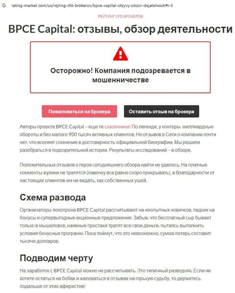 - Скам-конторе BPCE Capital пользователи не доверяют, называя разводом на деньги