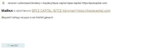Далее предоставлен еще один отзыв, который подтверждает то, что шулера БПСЕ Капитал не платят ни копейки, а лишь разводят людей на деньги.