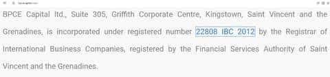 На сайте мошеннической организации BPCECapital указано, что юридическое лицо, которому принадлежит бренд, зарегистрировано на острове Сент-Винсент и Гренадины.