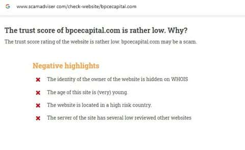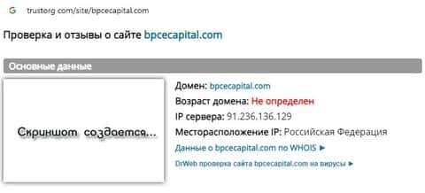 - Уровень доверия к сайту жульнической конторы BPCE Capital низкий