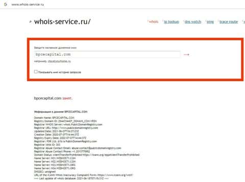 - Данные о владельце домена мошенников БПСЕ Капитал отсутствуют