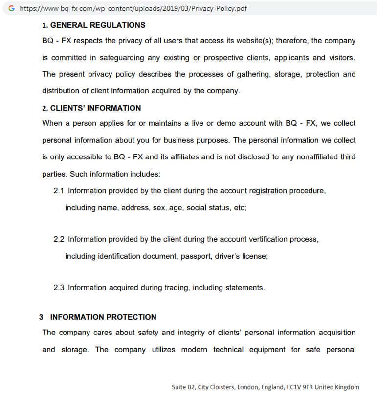 - Политика конфиденциальности форекс брокера БиКью ФХ