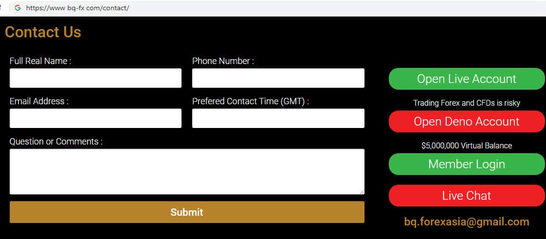 BQ-FX - типичный очередной скам-брокер, выдаваемый себя за честного и порядочного брокера, который предоставляет свои услуги лицам желающим торговать на рынке форекс. О том, что БиКью Фх надежный брокер - это миф. Не в коем случае не ведитесь на пустые обещания BQ-FX.