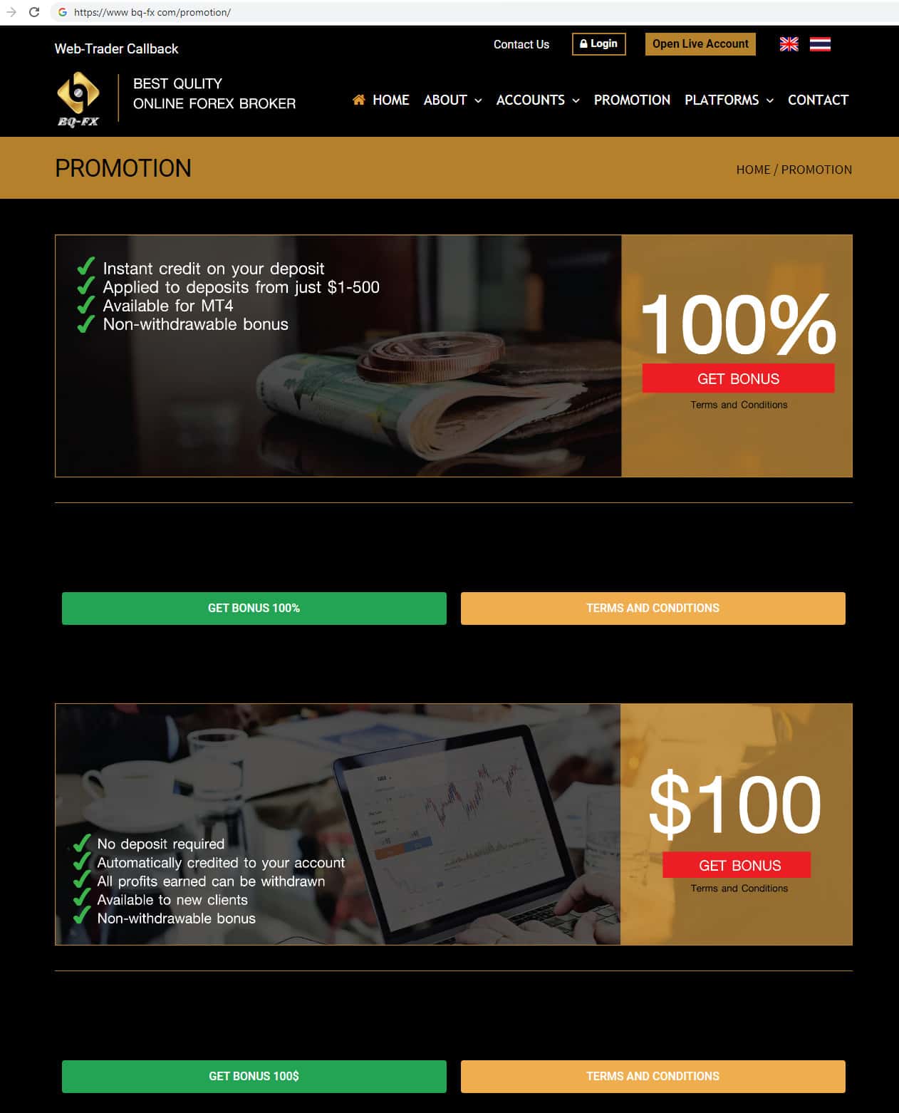 - Условия для получения бонусов на торговой платформе мошенников BQ-FX