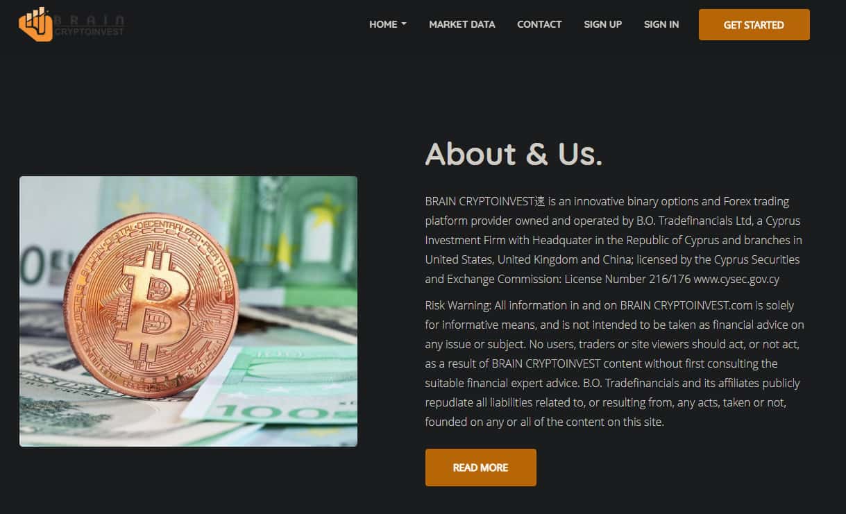 Обзор на внешний вид подвального сайта лохотрона Brain Cryptoinvest