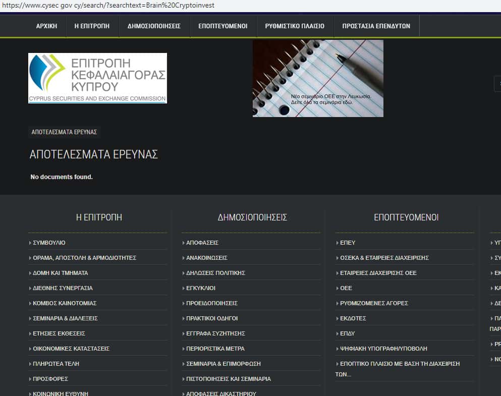 Несмотря на огромное количество лапши со стороны аферистов Брайн Криптоинвест они ничего толкового не говорят о своей лицензии или же регулировании, а попросту вскользь пытаются о ней упомянуть. Однако на сайте регулятора, указанного самими же шулерами Brain Cryptoinvest, ничего найти о лохотроне Брайн Криптоинвест так и не удалось.