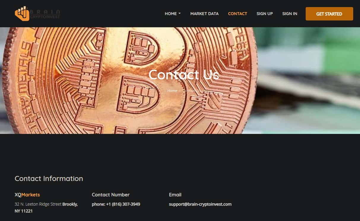Под свои довольно сомнительные контакты аферисты InvestingCapital отвели отдельный раздел своего сайта, где жулики Брайн Криптоинвест довольно мало своих данных. Данный факт определенно говорит о не особом желании аферистов Brain Cryptoinvest иметь дело с наивной клиентурой, или же тратить средства на обслуживание контактов. Итак контакты жуликов: