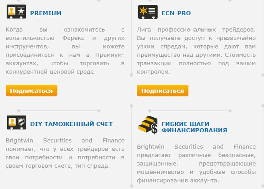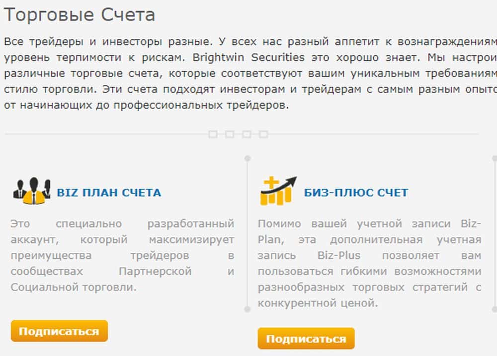 Какие типы счетов предлагают разводилы Брайт Вин?