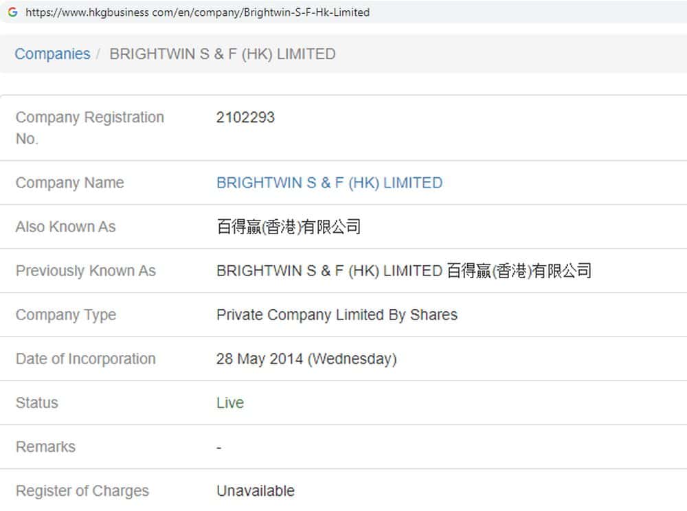 При этом есть еще одна конторы с тем же названием, BrightWin S and F Limited, которая зарегистрирована уже в свободной экономической зоне Гонконга. Возможно, это клон оригинальной хайп-структуры, так как сами жулики BrightWin жалуются, что их клонировали мошенники (ха-ха). Но больше похоже, что это еще один, скрытый филиал.