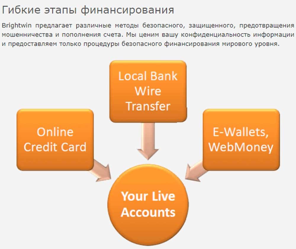 BrightWin - форекс-мошенники, которые строят из себя брокера. Жулики предлагают несколько торговых счетов, переменные спреды, кредитное плечо и аж две торговые Платформы. Только все это - сказки, чтобы заманить трейдеров-новичков в ловушку и любыми способами заставить их пополнить депозит. Вывести деньги невозможно.