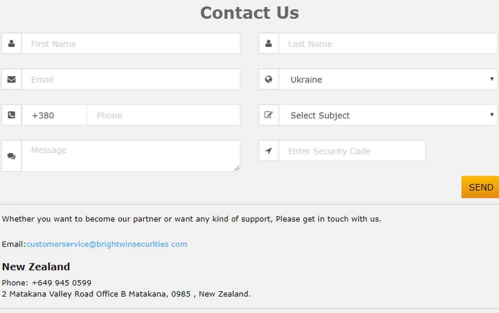Контактными данными своих клиентов проходимцы BrightWin тоже не балуют. На сайте есть форма обратной связи - как известно, в случае реальных проблем (а они будут, например, с выводом денег) служба поддержки реагировать перестает. То же самое касается "общего" номера телефона - вероятность дозвониться по нему крайне мала.