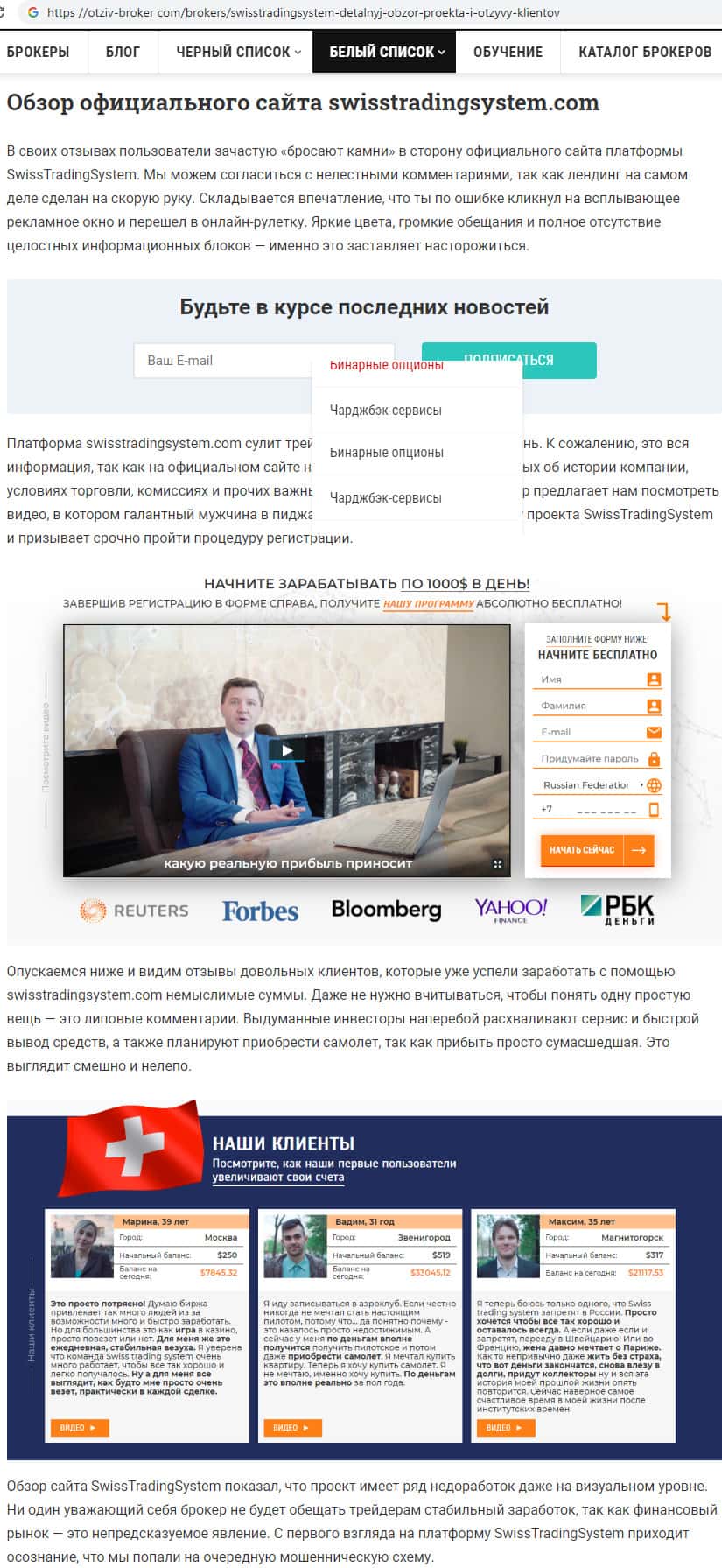 - Авторитетный интернет-ресурс otziv-broker com показал лживую сторону форекс кухни SwissTradingSystem Com