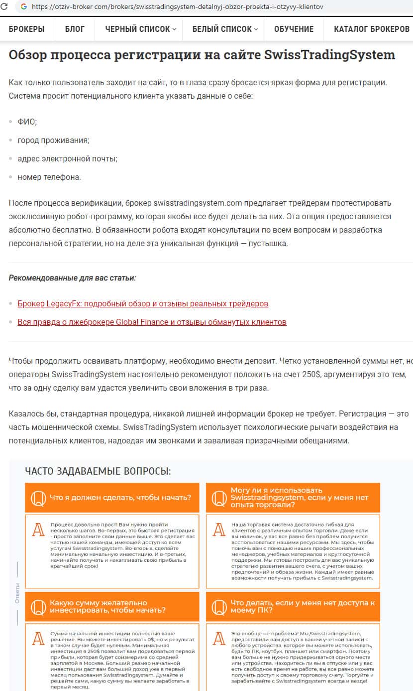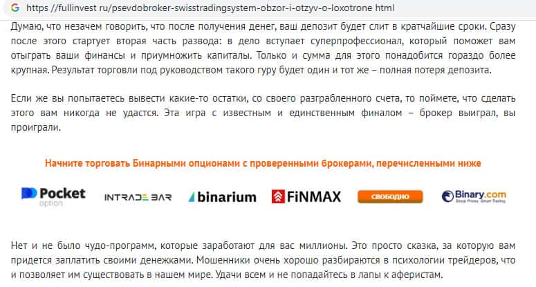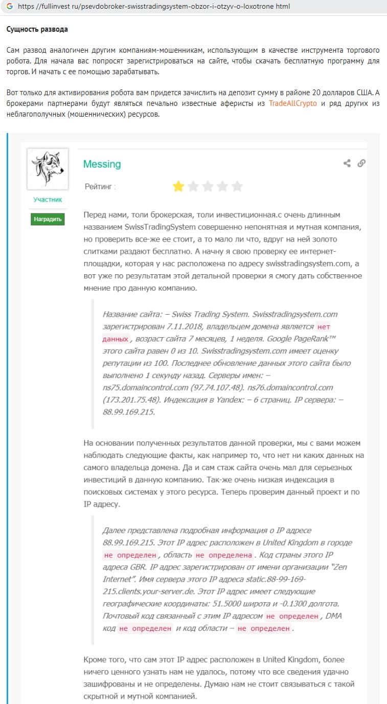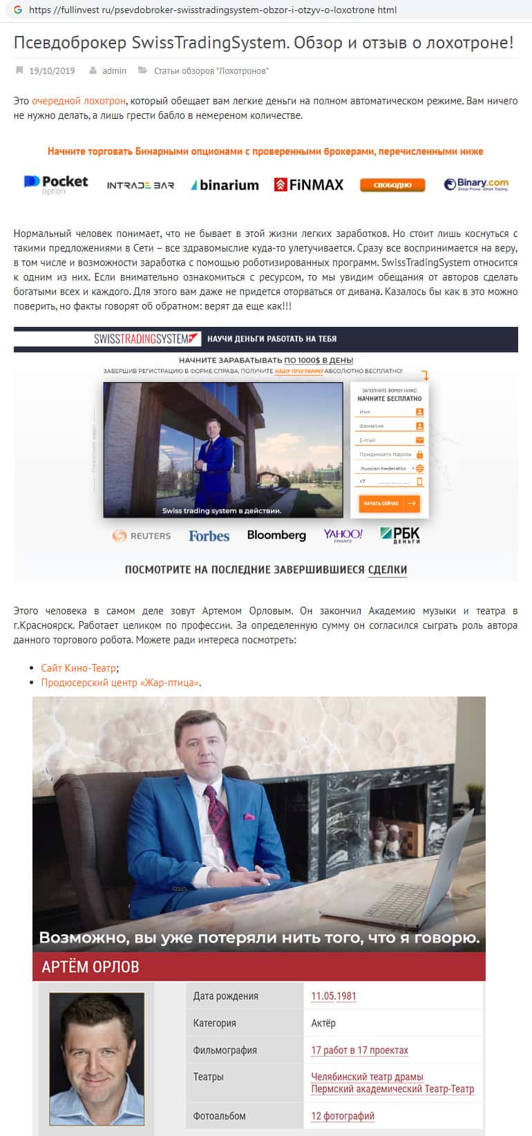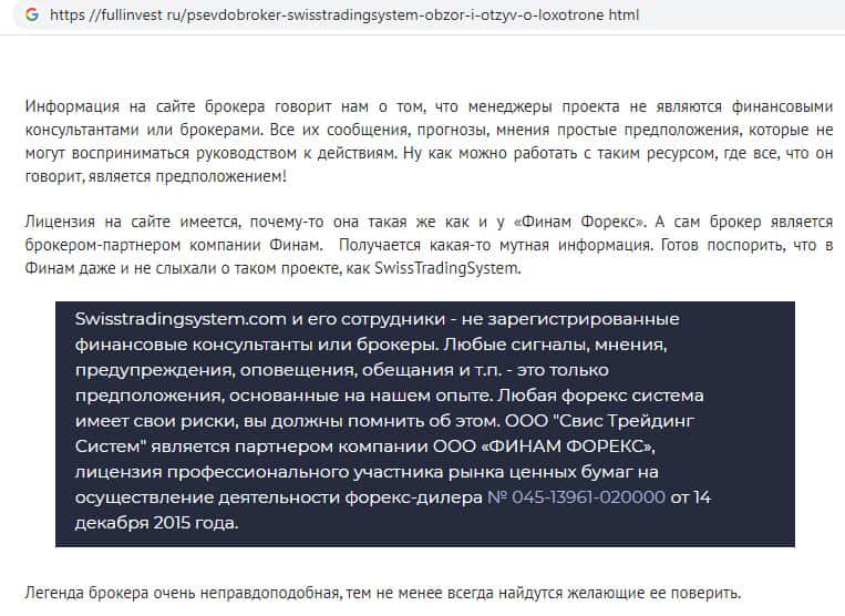 fullinvest ru - сайт-обзорщик на лживого брокера SwissTradingSystem Com