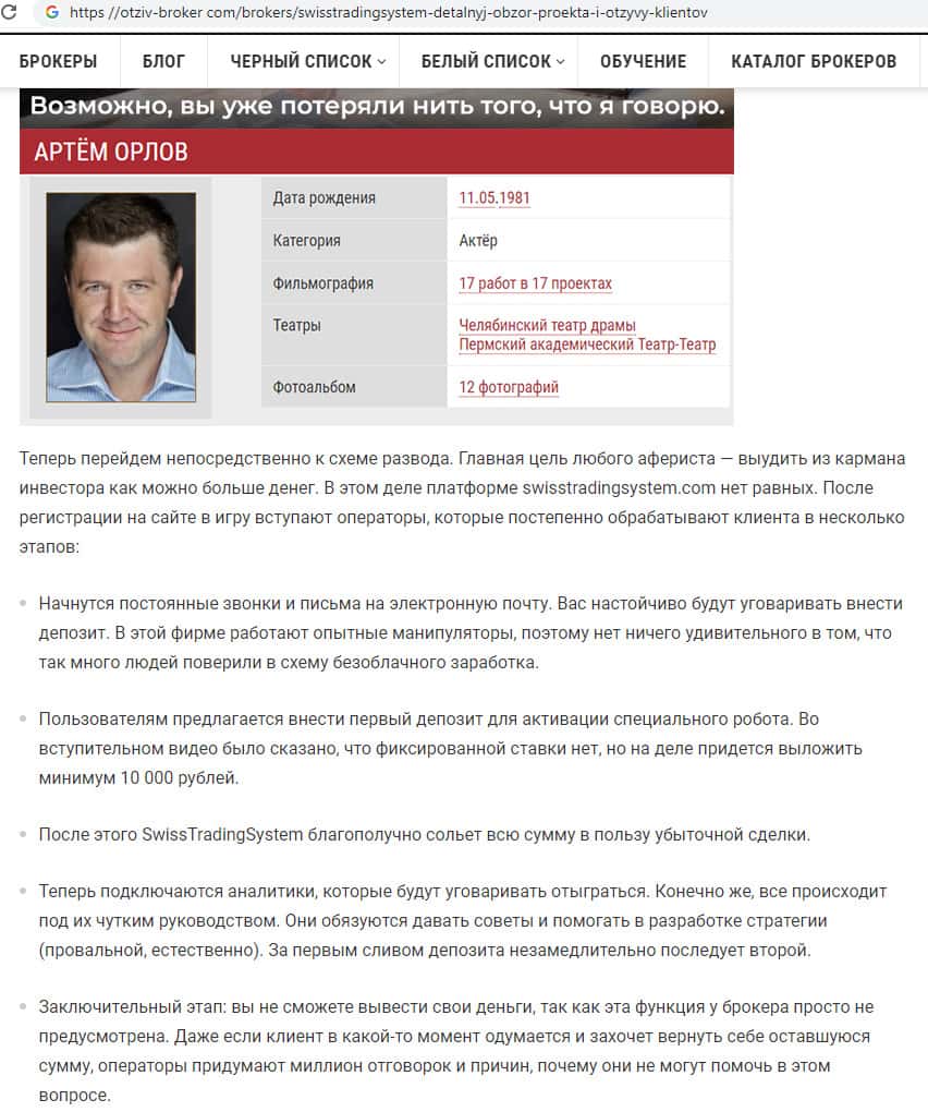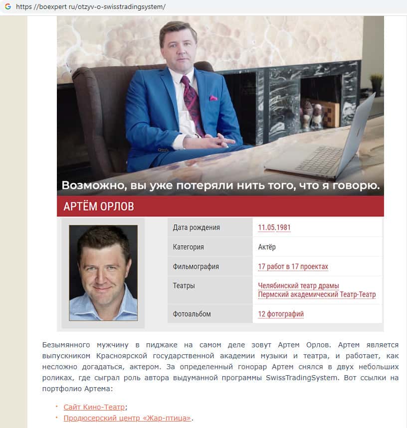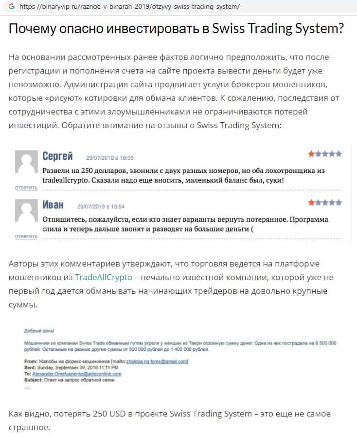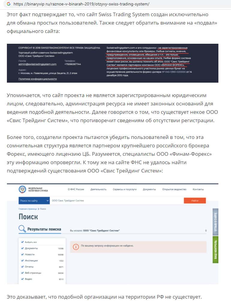 - Творец вышеуказанного материала о незаконной деятельности аферюг из псевдокомпании SwissTradingSystem Com