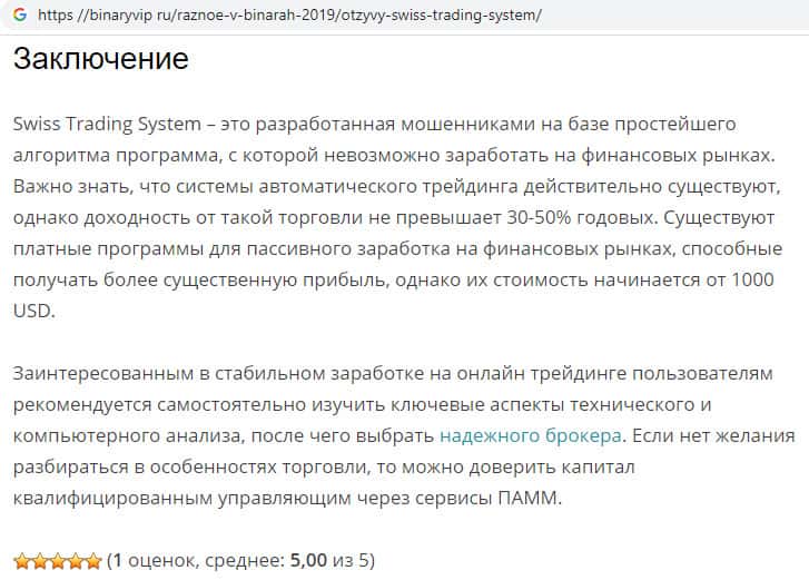 - Краткий обзор жульнического интернет-портала шарлатанского поставщика сигналов SwissTradingSystem Com