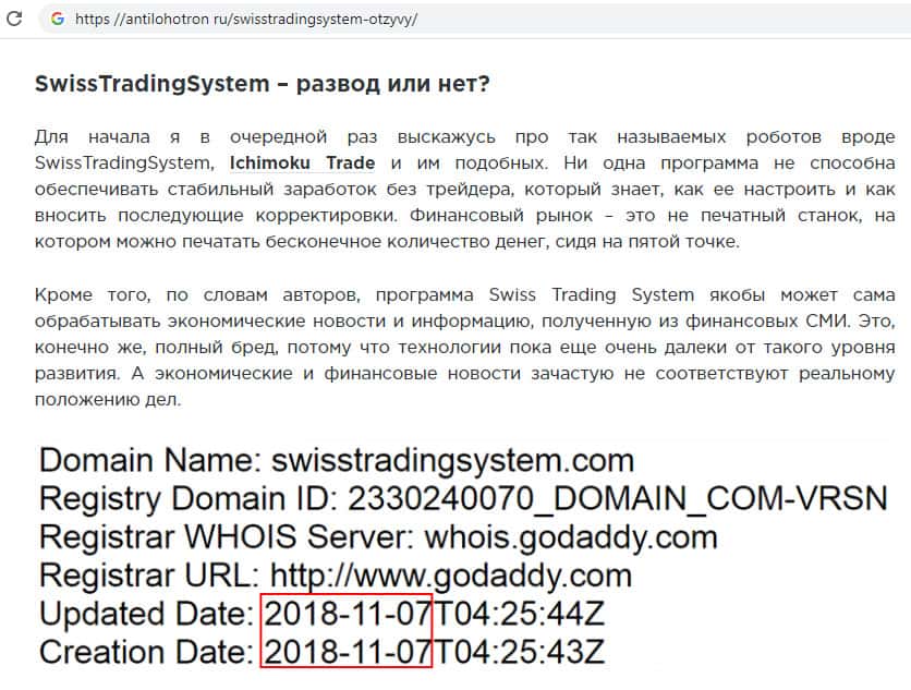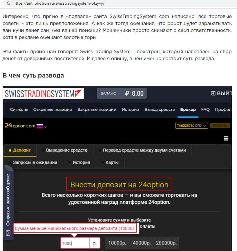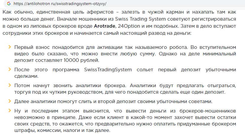 antilohotron ru - обзорщик на шарагу SwissTradingSystem Com