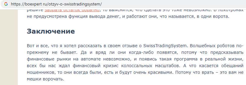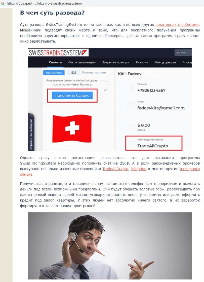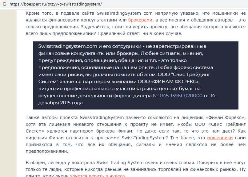 - Подробный обзор мошеннической компании SwissTradingSystem Com на веб-портале boexpert ru