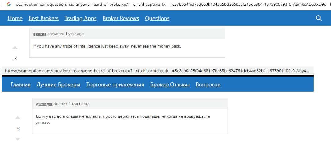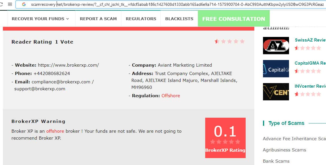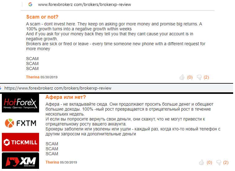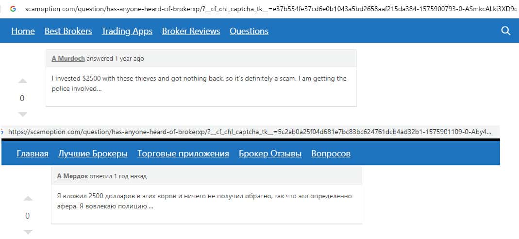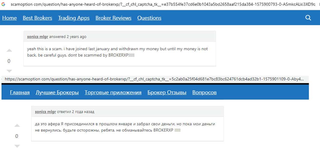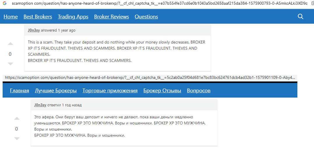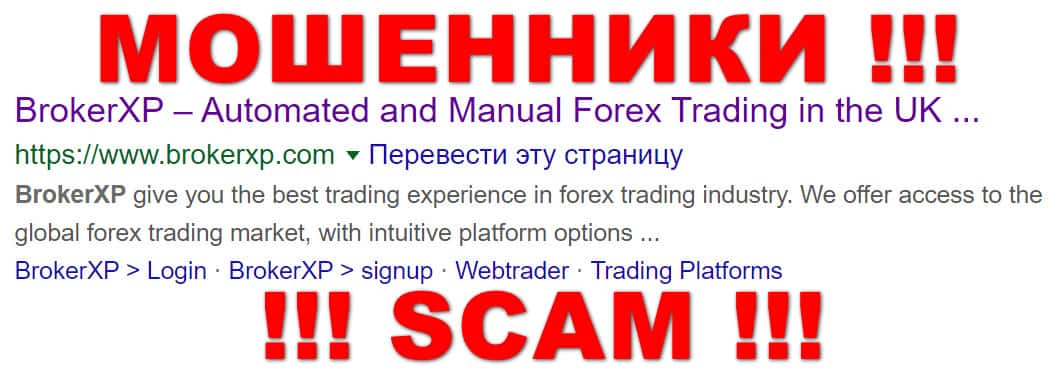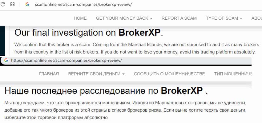 Один из авторитетных порталом интернета подтверждает, что брокер BrokerXP является типичным форекс-мошенником. Лохотрон расположен на Маршалловых островах, хотя на самом деле нет никакой информации именно на их официальном сайте. Поэтому контора является очень мутная и вы потеряете деньги, если свяжетесь с ними.