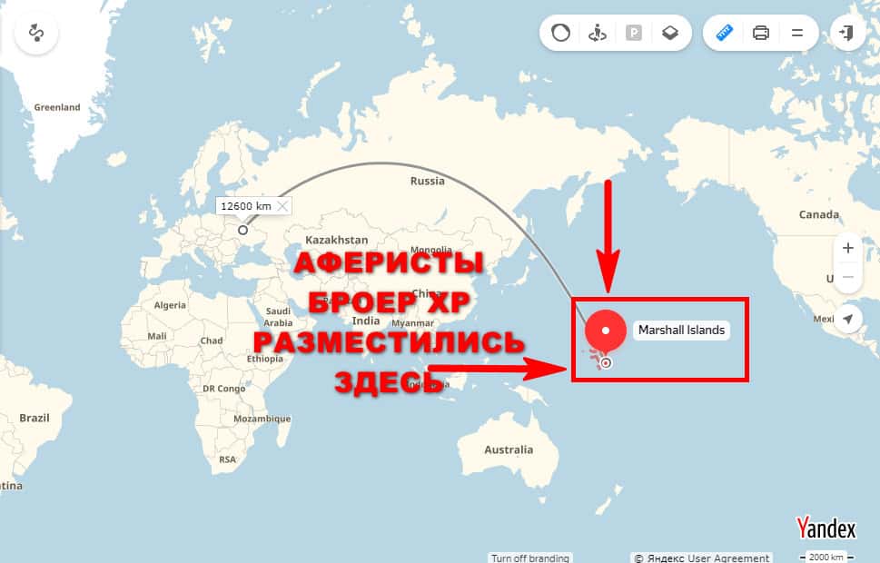 Чтобы не нести ответственность за совершенные преступления, руководство лохотрона Брокер ХР приняло решение основать свою контору в оффшорном государстве Маршалловы острова. Вот собственно ее точный адрес: Trust Company Complex, AJELTAKE Road, AJELTAKE Island Majuro, Marshall Islands, MH96960.