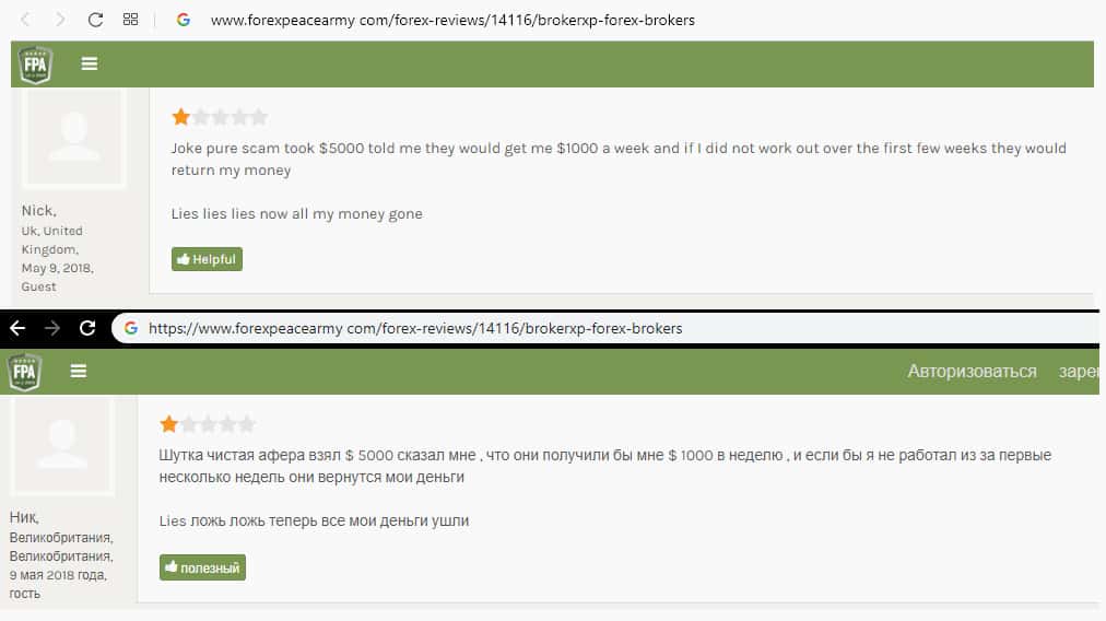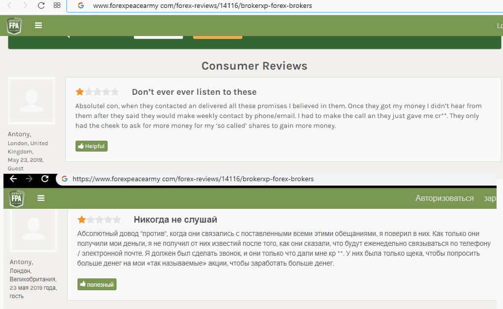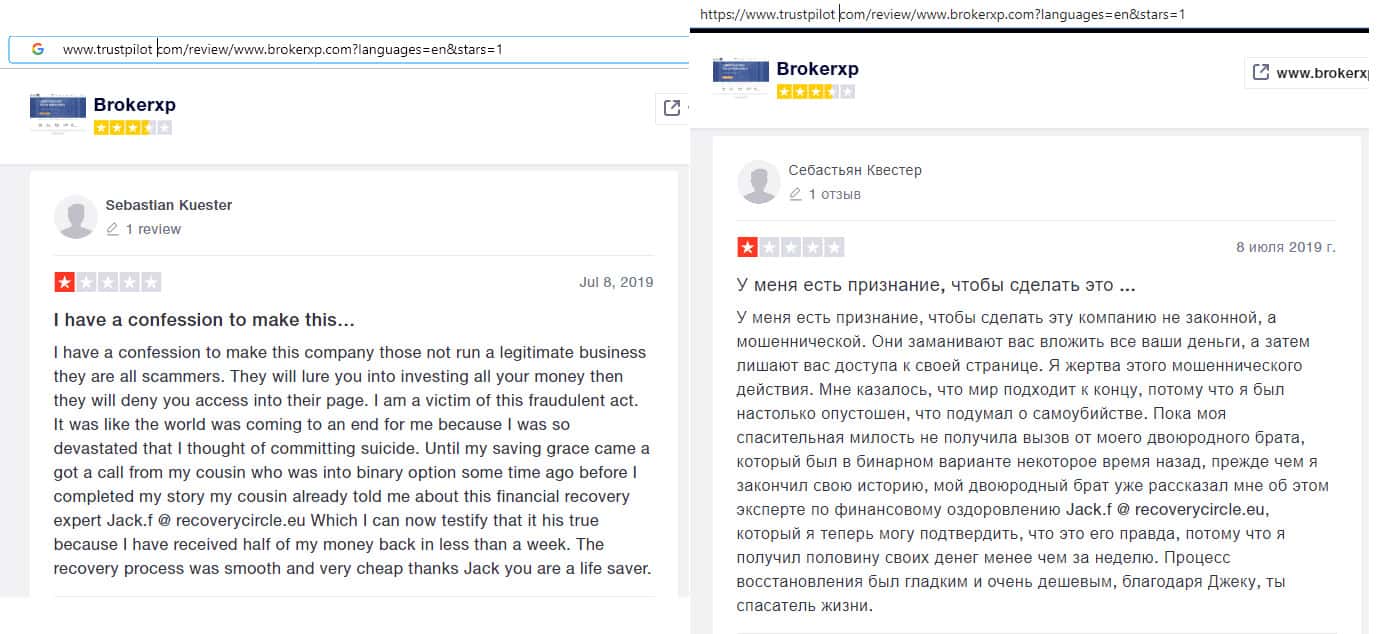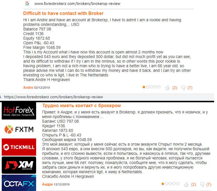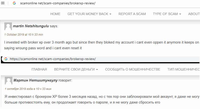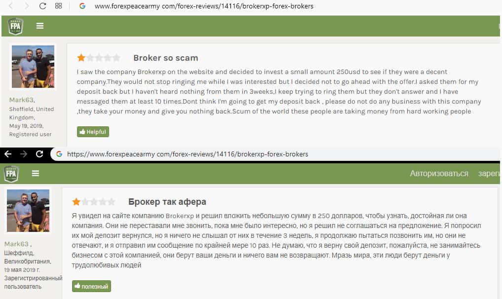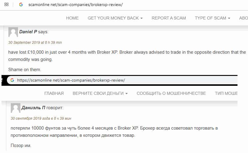 Пострадавший рассказал свою историю, как однажды ему позвонили из конторы BrokerXP и предложили открыть торговый счет, положив туда порядка 10 000 фунтов стерлингов. Он так и сделал и, из-за действий аналитиков, лохотрон слил ему за 4 месяца все деньги. На все вопросы о произошедшем жулье просто отмалчивается.