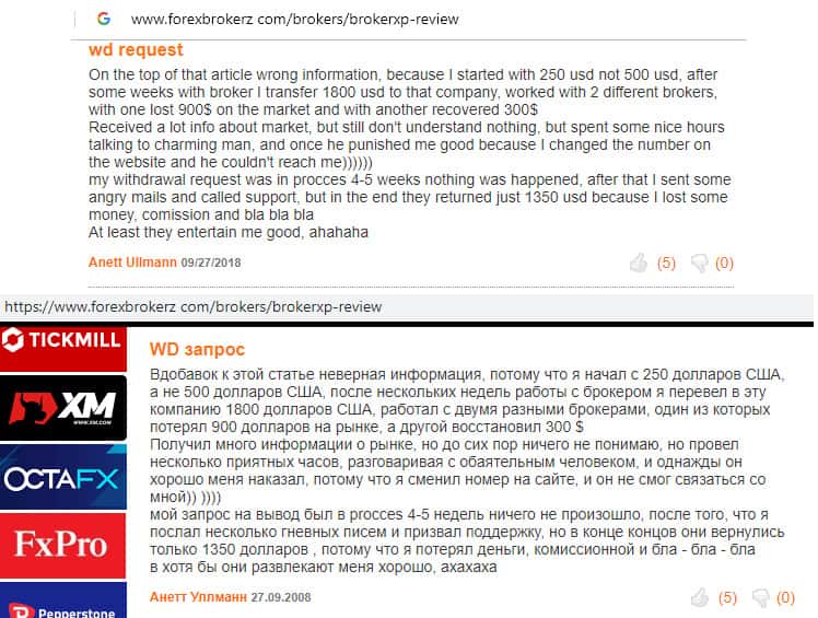 - Шарлатаны BrokerXP отказываются возвращать 250 долларов США