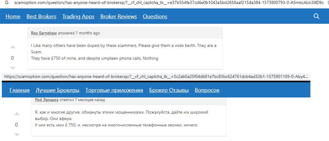 В следующем отзыве жертва лохотрона BrokerXP рассказал свою ситуацию, в которой он был обманут мошенниками по такой же схеме как и всех остальных. Они выманили из его кармана порядка 750 фунтов стерлингов и, несмотря на многочисленные звонки с его стороны, не желают ничего предпринимать.