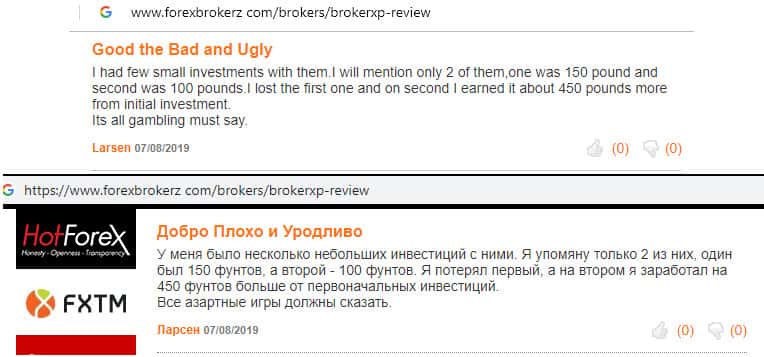 По словам одного пользователя сети, он не доволен деятельностью BrokerXP и то, как они предоставляют услуги по трейдингу. Они вообще понятия не имеют что это такое, а вот деньги постоянно пытаются вытащить. Так что, если вам позвонят оттуда, то человек настоятельно рекомендует бросать сразу трубку.