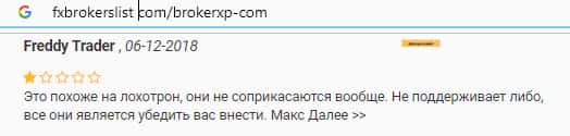 В следующем отзыве один опрокинутый клиент рассказывает, как он вложил 2500 долларов на торговый счет, по рекомендациям кухонного брокера BrokerXP и очень об этом пожалел. Когда он попытался достучаться до службы поддержки, дабы вывести часть денег, ему ответили категорическим отказом.