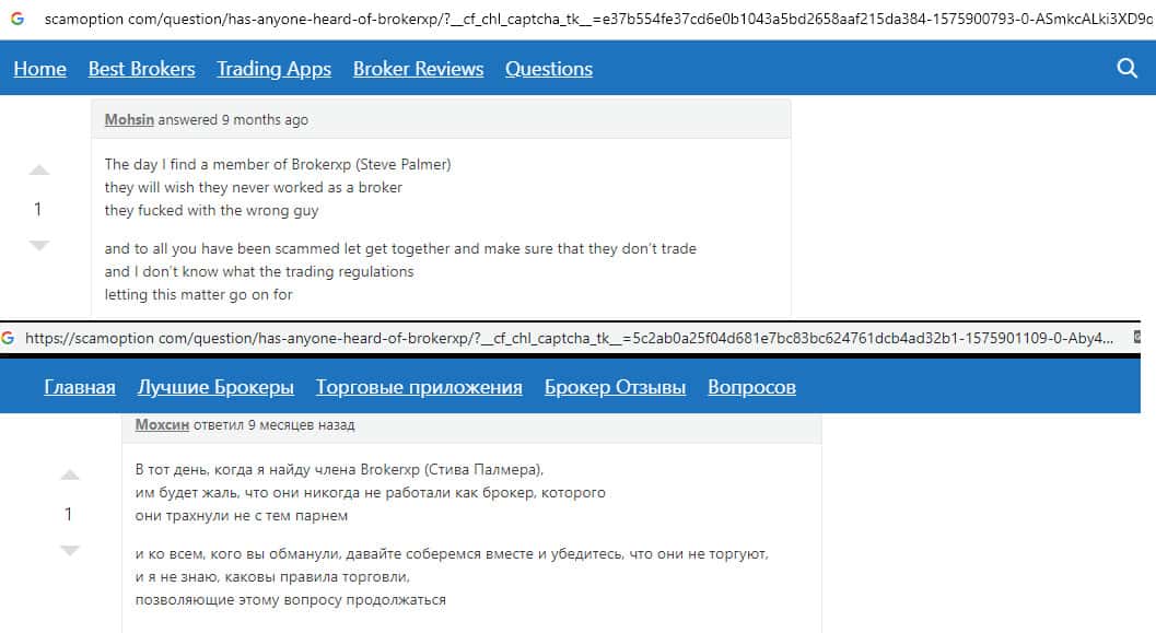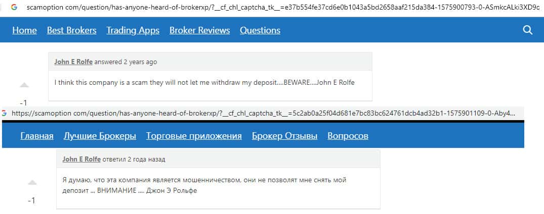 - Вывод одного из порталов касательно аферистов BrokerXP